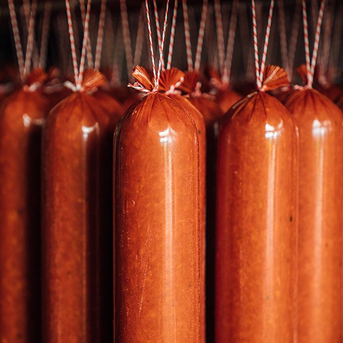 Tripas de colágeno hechas de fibras de colágeno de alta calidad y proteína de soja ofrece un rendimiento excepcional para los fabricantes de salchichas en términos de consistencia, que une el rendimiento, la apariencia y calidad en mordida.